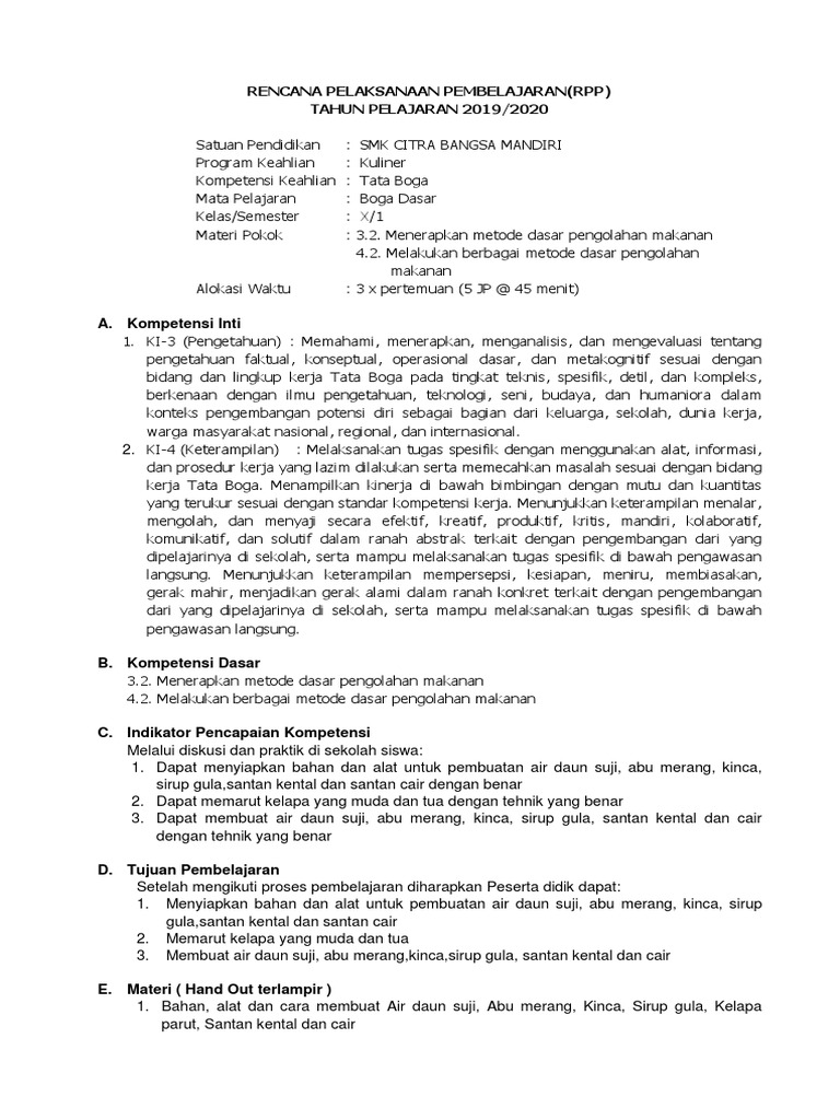 Rencana pelaksanaan pembelajaran (rpp) kurikulum 2013 revisi 2020 harus dibuat oleh para pendidik untuk tahun pelajaran 2020/2021. Jual rpp kurikulum 2013 revisi 2020 1 lembar sd, smp dan sma toko online rpp silabus kurikulum 2013 revisi 2020 jenjang sd, smp dan sma lengkap dengan prota, prosem, kikd, alokasi waktu dan perangkat pembelajaran lainnya home. Cd rpp tata boga smk berkarakter Download silabus dan rpp tata boga smk. Buku sekolah elektronik bse pengetahuan bahan makanan 1. Kelas 10 smk pengetahuan pedalangan 2. Download rpp tata hidang smk kelas xi kurikulum 2013 revisi 2017 2018 semester ganjil dan genap jurusan tata boga. Download rpp produk cake dan kue indonesia smk kelas xi xii kurikulum 2013 revisi 2017 2018 semester ganjil dan genap jurusan tata boga. Telah tersedia rpp 1 lembar revisi 2020 / daring. Bagi anda yang saat ini tengah duduk dibangku xi smk dan mengambil jurusan tata boga, tentu beragam materi pelajaran sudah didapatkan. Bagi anda yang saat ini tengah duduk dibangku xi smk dan mengambil jurusan tata boga, tentu beragam materi pelajaran sudah didapatkan. Dengan rencana pelaksanaan pembelajaran tersebut guru yang mengampu pelajaran coklat dan permen coklat ini akan sangat terbantu dalam menyiapkan rencana pembelajaran dalam bentuk rpp. Bagi anda yang saat ini tengah duduk dibangku xi smk dan mengambil jurusan tata boga, tentu beragam materi pelajaran sudah didapatkan.