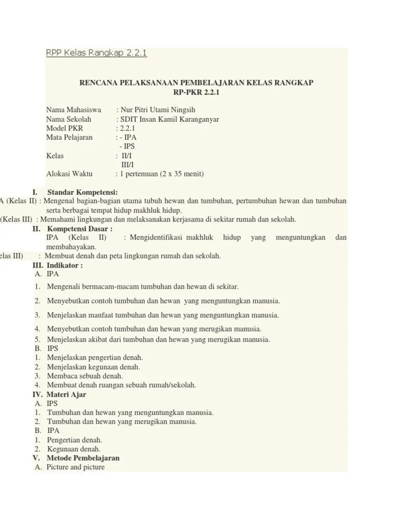 Rencana pelaksanaan pembelajaran kelas rangkap. Contoh rpp kelas rangkap model 221. Contoh rpp kelas rangkap model 221 ipa k docx. Sy blh mnt dkirim g rpp kelas rangkap model 222 333 tp yg semester 2 untuk sd.pliiiiiiiiiz tugas kuliah. Assalamualaikum kak boleh saya minta filenya. model 221(2 mata pelajaran,2 tingkat kelas,1 ruangan) pdgk 4302. rpp kelas rangkap model 221 k13 kelas 3 dan 4. rpp pkr model 221 kelas 3 dan 4 semester 2. 1 pertemuan (2 x 35 menit) i. Berikut ini adalah file tentang rpp kelas rangkap model 221 kelas 4 dan 5 semester yang bisa bapakibu unduh secara gratis dengan menekan tombol download pada tautan link di bawah ini. Diajukan u ntuk memenuhi tugas mata kuliah pembelajaran kelas rangkap. Sekaligus untuk mengukur kemampuan guru dalam menyampaikan materi pembelajaran. rpp kelas rangkap model 221 k13 kelas 4 dan 5 seputar model.